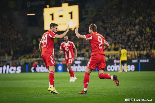 比分落后的拜仁在下半場(chǎng)第53分鐘改寫(xiě)比分,基米希將球挑傳到禁區(qū),格納布里頭球擺渡,哈里-凱恩完成破門(mén)扳平比分,拜仁1-1多特蒙德。第70分鐘,斯塔尼希奇在禁區(qū)被絆倒,裁判吹罰點(diǎn)球,哈里-凱恩主罰點(diǎn)球命中,拜仁2-1反超多特蒙德。
