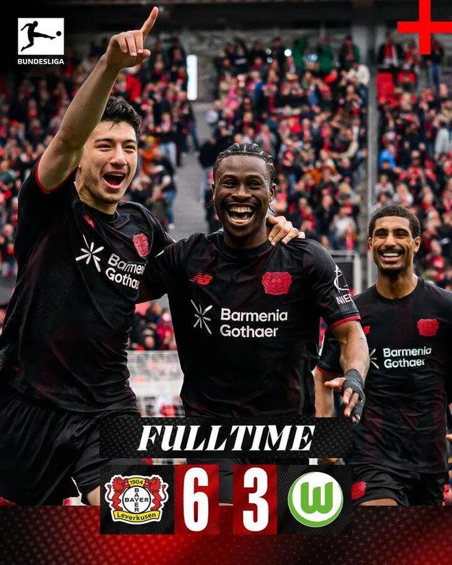 勒沃庫森6比3沃爾夫斯堡