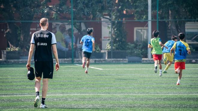 賽場之外,斯圖加特的教練團隊也切實推動了足球運動在印度青少年群體中的普及。團隊到訪薩沃塔姆國際學校,為校內(nèi)約 100 名孩子帶來了他們?nèi)松械谝惶孟到y(tǒng)化的足球訓練課,印度主流媒體 NDTV、Khelo 等均到場對本次活動進行了專題報道。此次行程的另一高光時刻,是斯圖加特團隊與蘇德瓦青訓學院的孩子們一同到訪德國駐印度德里大使館,與德國駐印度大使菲利普?阿克曼展開了輕松友好的交流,現(xiàn)場設置的迷你訓練展示環(huán)節(jié),也讓孩子們在外交場合盡情展現(xiàn)了足球運動的魅力。