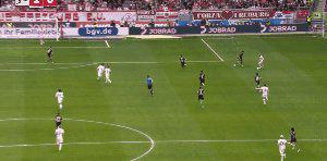 補(bǔ)時(shí)第9分鐘,基米希分球,阿方索·戴維斯送出橫傳,倫納特·卡爾包抄破門,拜仁3比2反超比分。