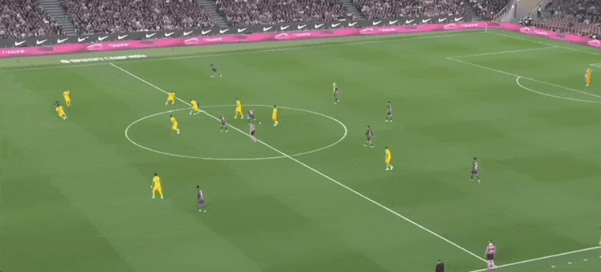 然而第10分鐘,巴薩利用角球的機(jī)會,亞馬爾直接傳到后點(diǎn),后點(diǎn)插上的費(fèi)蘭托雷斯頭球破門,1:0!落后的西班牙人逐漸加強(qiáng)了逼搶強(qiáng)度,趁勢發(fā)動了幾次攻勢,但是沒有形成實(shí)質(zhì)性的威脅。