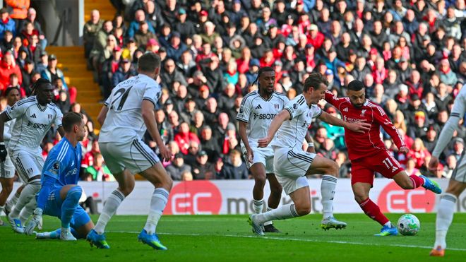 接下來的15分鐘,利物浦持續(xù)施壓,距離進球也越來越近,富勒姆的防守顧此失彼。