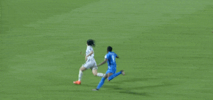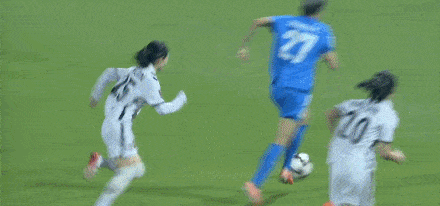 第80分鐘,王霜開出定位球,姜晨璟近距離頭球攻門,金京熙飛身將球沒收。