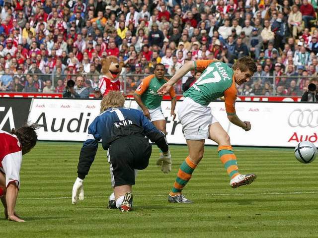 此后,克洛澤加盟,德甲聞之色變的超強(qiáng)組合橫空出世。一個是撕裂長空的戰(zhàn)斧,一個是貼地潛行的利刃。他們相得益彰,讓不萊梅的鋒線成為所有德甲后衛(wèi)的噩夢。那些年,克拉什尼奇是拜仁苦主,是歐冠賽場上戴帽的英雄,是威悉球場永遠(yuǎn)的寵兒。他的足球之路,繁花似錦,前程如歌。