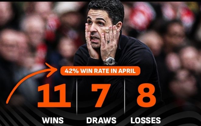 反觀阿森納,他們?cè)谑展匐A段的勝率和賽季初是存在不小差距的,尤其是4月份收官階段的表現(xiàn),更是和曼城差距明顯。從數(shù)據(jù)的角度來看,阿爾特塔執(zhí)教阿森納期間,4月份26場英超比賽,僅僅只有11場比賽的勝利,勝率只有42%,甚至還不到一半。平局則是有7場,卻輸?shù)袅?場比賽,在關(guān)鍵時(shí)刻的比賽當(dāng)中連續(xù)丟分,是阿森納在過去幾個(gè)賽季末期連續(xù)崩盤的關(guān)鍵。
