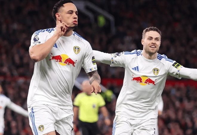 比賽剛開場5分鐘,利茲聯(lián)就給了曼聯(lián)當(dāng)頭一棒。博格右路傳中,約羅與勒溫爭頂未果,后點(diǎn)奧卡福輕松推射得手。這還沒完——第29分鐘,卡塞米羅后場被斷,奧卡福凌空抽射打在約羅身上變線入網(wǎng),完成梅開二度。要知道,這位去年夏天從AC米蘭加盟的前鋒,此前24場英超只進(jìn)4球,這場卻在夢劇場大放異彩。