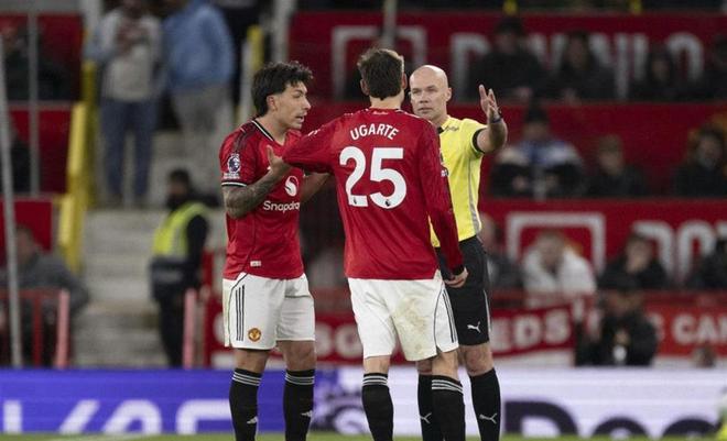 而曼聯(lián)將帥之所以生氣,其實并非單單是這張紅牌,而是主裁判在判罰上的雙標。利茲聯(lián)的第一粒進球中,勒溫用手臂架住了曼聯(lián)中衛(wèi)約羅,但主裁判保羅-蒂爾尼認為是正常的身體接觸。而在隨后的一次利茲聯(lián)進攻中,勒溫再度將約羅推倒。就算是利馬的紅牌,也是勒溫在爭搶中線抓住了利馬的脖子,而后者則通過扯他的頭發(fā)作為回應(yīng)。準確說,阿根廷中衛(wèi)只是扯了勒溫的頭繩。只不過,他的舉動被VAR看了個清清楚楚,