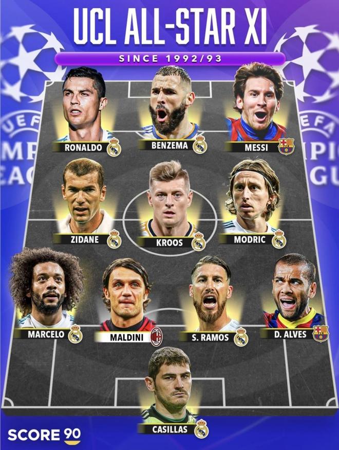 最近有評(píng)分媒體發(fā)布了一套“自1992/93賽季以來(lái)的歐冠全明星十一人”。在這份名單里,皇馬成了最大贏家,直接占據(jù)7個(gè)席位,巴薩拿到2席,米蘭僅占1席,門(mén)將位置則給了卡西利亞斯。只看個(gè)人名氣,這套陣容確實(shí)稱(chēng)得上豪華,但如果真要從歐冠的長(zhǎng)期表現(xiàn)、場(chǎng)上位置平衡以及時(shí)代統(tǒng)治力來(lái)分析,這個(gè)版本并不完美。尤其是后防線(xiàn)的組合以及中前場(chǎng)的取舍,已經(jīng)成了球迷們爭(zhēng)論的焦點(diǎn)。