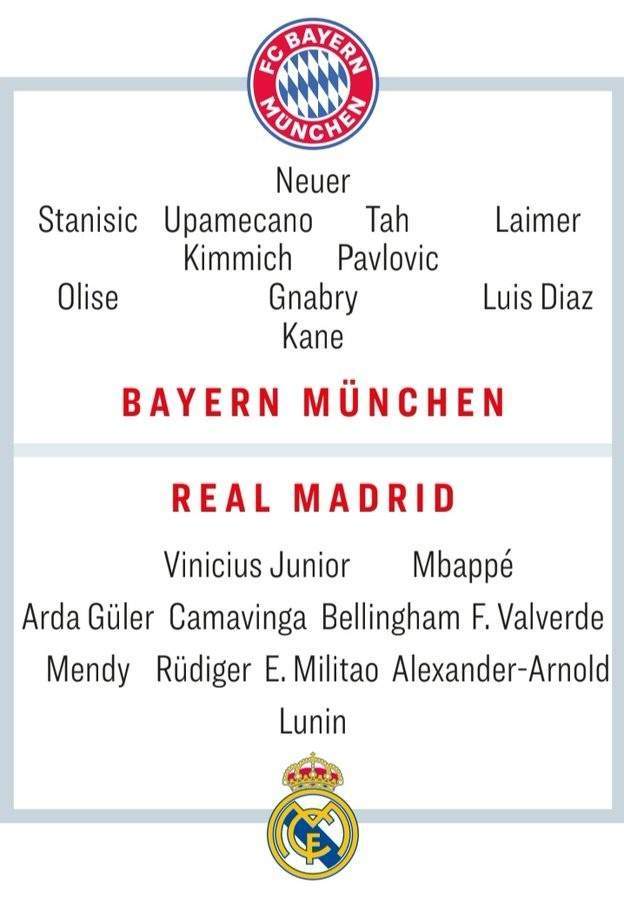 拜仁將在本輪歐冠再戰(zhàn)皇馬,《踢球者》預測了兩隊首發(fā)陣容。