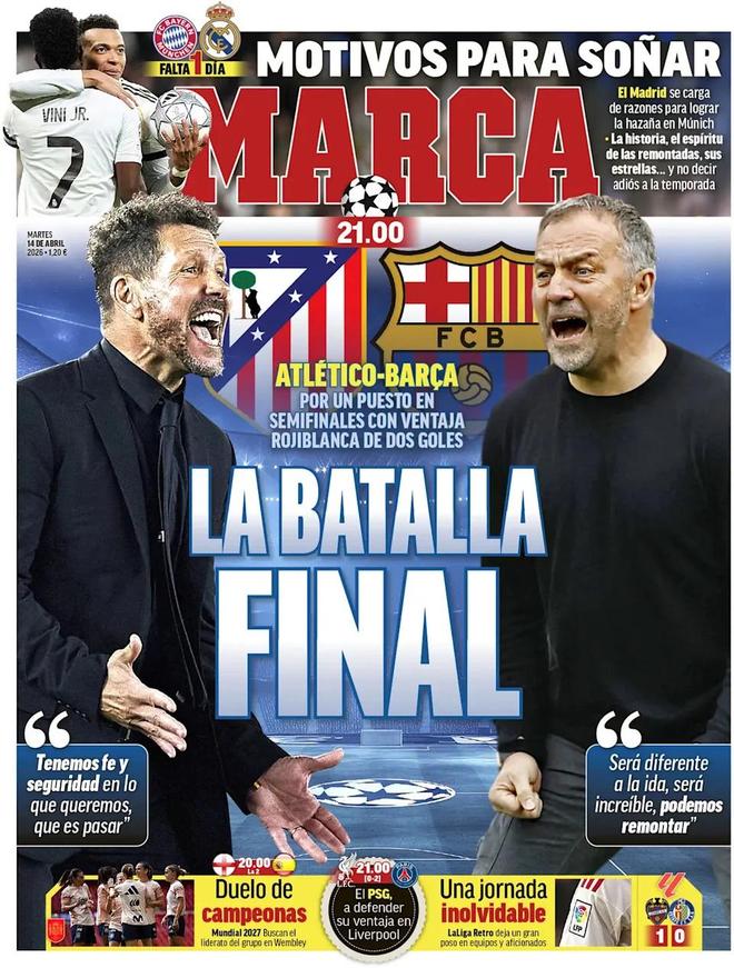 4月14日,西班牙6家體育報紙頭版被同一畫面霸占——馬競vs巴薩,歐冠1/4決賽次回合。這不是普通的淘汰賽,而是14天內(nèi)的第三場直接對話。當足球賽程壓縮到這種密度,球迷的注意力經(jīng)濟正在被重新定價。