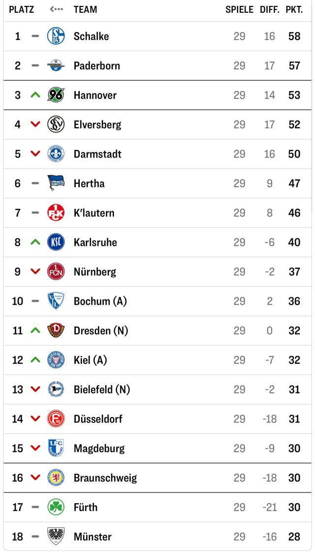 本輪德乙,領(lǐng)頭羊沙爾克04在遇到各種不利條件的逆境下,做客2比1逆轉(zhuǎn)升級(jí)競(jìng)爭(zhēng)對(duì)手埃爾弗斯貝格,拿到重要3分。德乙29輪戰(zhàn)罷,沙爾克58分排在第一,領(lǐng)先第三的漢諾威96足有5分,在最后5輪還有3個(gè)主場(chǎng)的情況下升級(jí)前景光明。