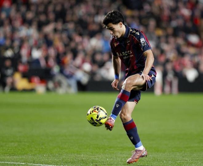 本賽季西甲第26輪,萊萬特主場迎戰(zhàn)阿拉維斯。比賽第60分鐘,埃斯皮替補(bǔ)登場。剩下的30分鐘,他干了三件事,第72分鐘,頭槌破網(wǎng),1比0;第88分鐘,左腳推射死角,2比0。頭頂腳踢上演梅開二度。要知道,這不是普通的梅開二度。這是時隔61年,第一次有萊萬特自家青訓(xùn)培養(yǎng)出來的球員,在西甲賽場上為青蛙軍團(tuán)單場打入兩球。上一位做到這一點(diǎn)的人,叫何塞龐斯,時間是1964/65賽季。61年,兩代人的時間。埃斯皮只用了一場替補(bǔ)出場,就把這段塵封的歷史翻了過去。