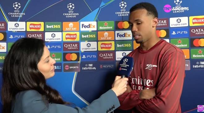 阿森納主場(chǎng)0-0戰(zhàn)平葡萄牙體育,兩回合總比分1-0晉級(jí)歐冠半決賽,加布里埃爾賽后接受了TNT體育巴西頻道的采訪。