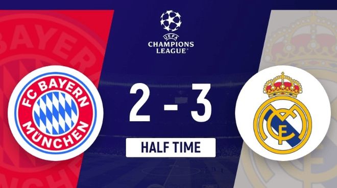 先看慕尼黑。首回合2-1領(lǐng)先的拜仁,回到主場卻經(jīng)歷了一場史詩級對攻。上半場35秒,諾伊爾出球失誤,居萊爾吊射空門,創(chuàng)皇馬隊史歐冠第二快進(jìn)球;隨后他再轟任意球世界波,29分鐘完成梅開二度,成為首位在安聯(lián)球場對拜仁雙響的客隊球員。姆巴佩推射破門,助皇馬半場3-2反超,總比分4-4!